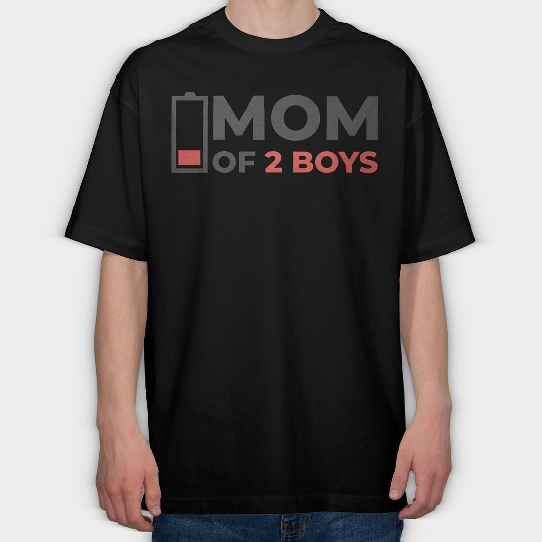 Funny Mom Quote Low Battery Mom Of 2 Boys, Tricou Oversize Barbati (Unisex)
