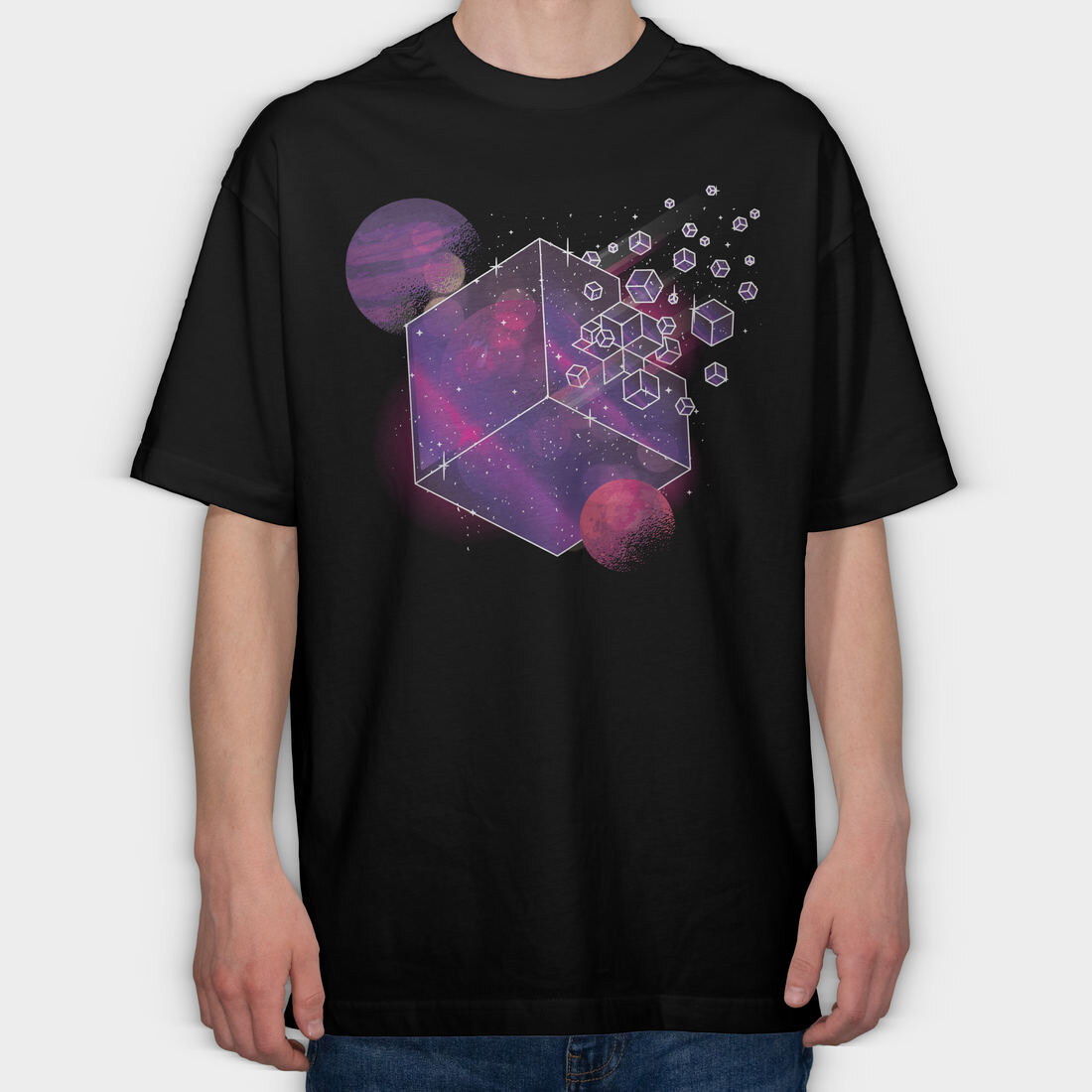 Galaxy Cube Space, Tricou Oversize Barbati (Unisex)