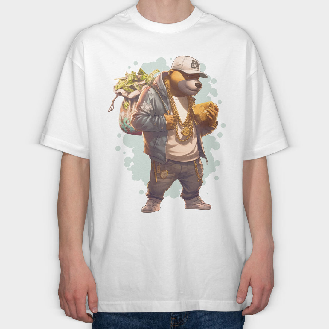 Gangster Bear Money Gold, Tricou Oversize Barbati (Unisex)