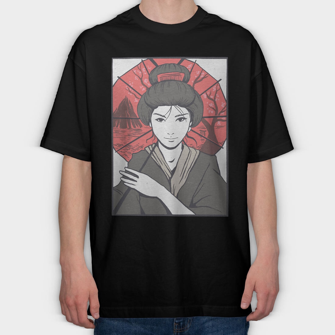 Geisha Umbrella, Tricou Oversize Barbati (Unisex)