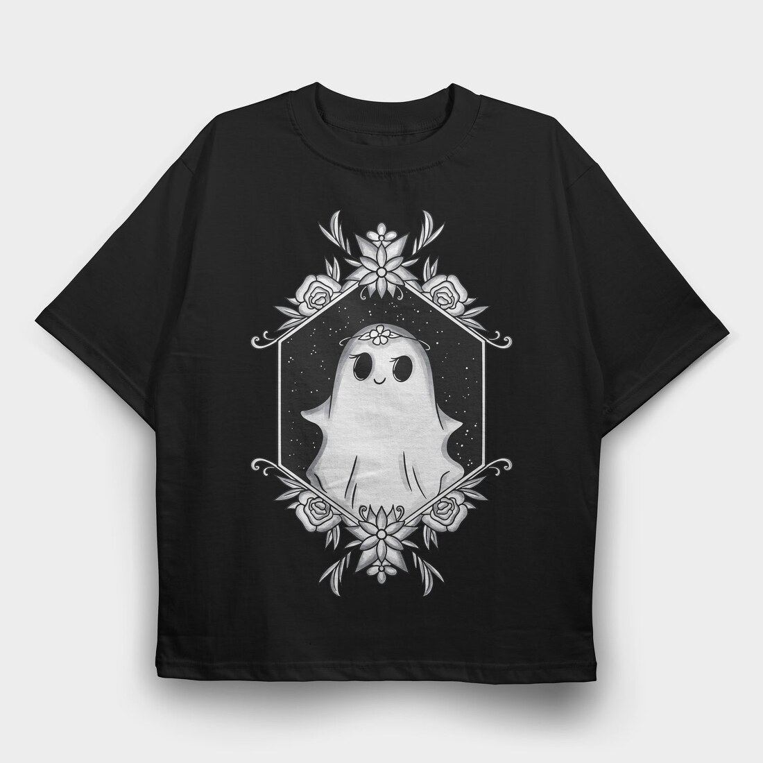 Ghost With Floral Decoration, Tricou Oversize Barbati (Unisex)