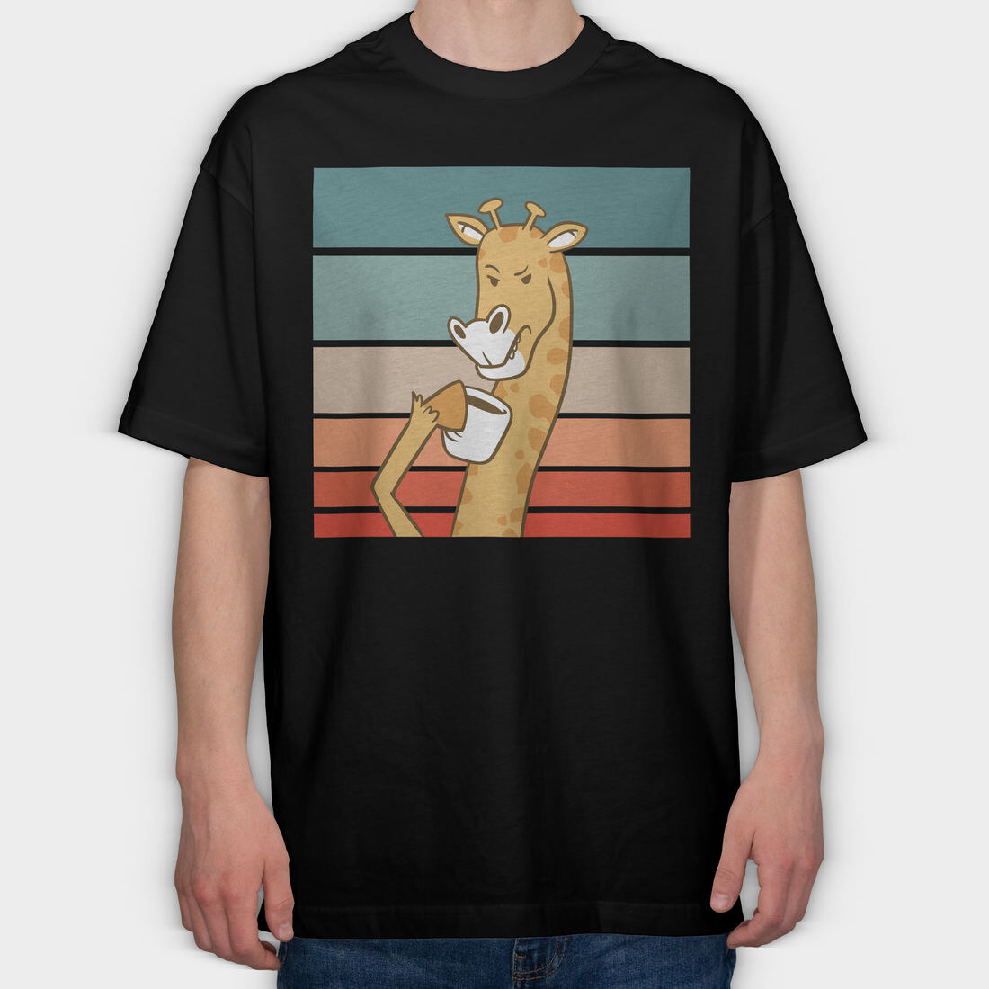 Giraffe Drinking Coffee, Tricou Oversize Barbati (Unisex)