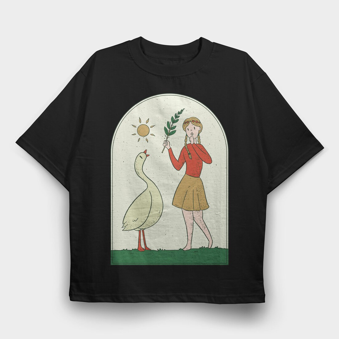 Girl With Goose, Tricou Oversize Barbati (Unisex)