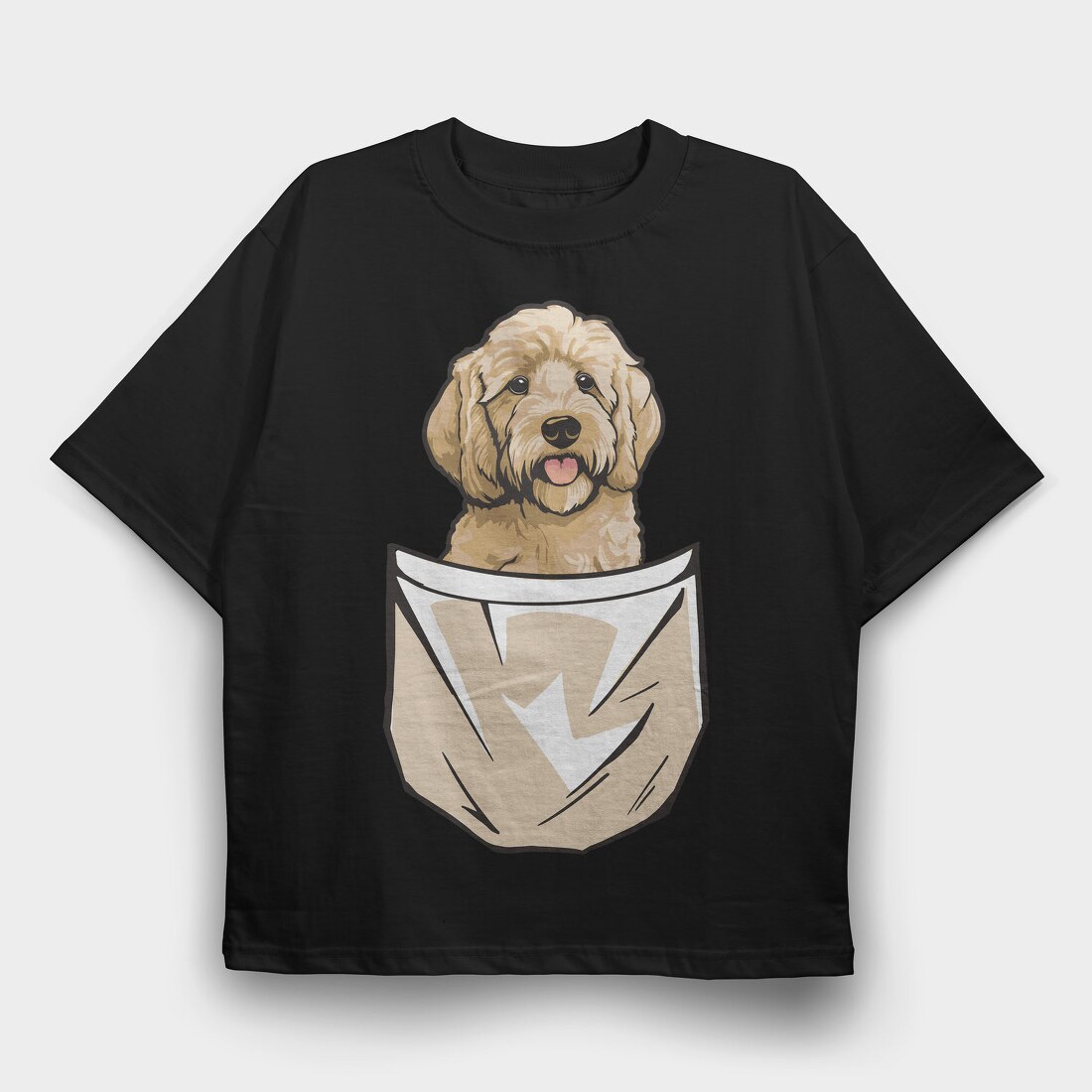 Golden Doodle Dog Pocket, Tricou Oversize Barbati (Unisex)