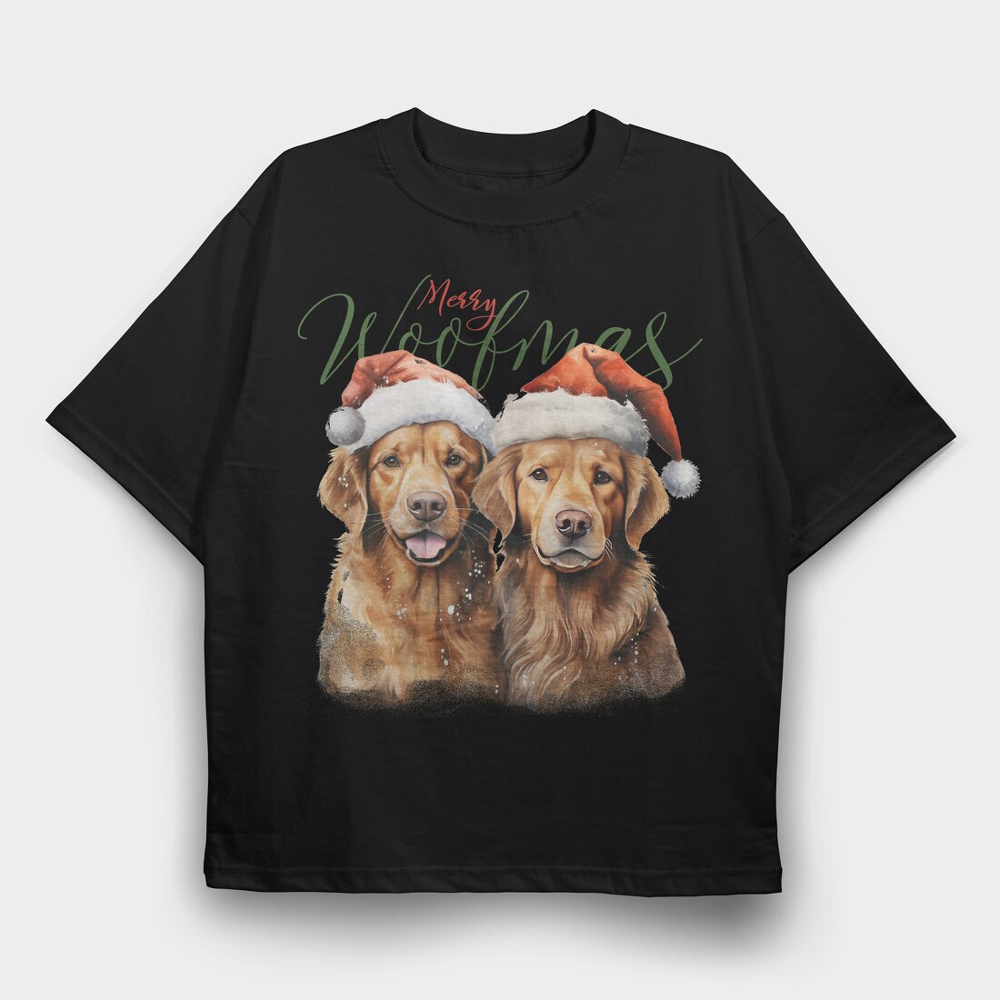 Golden Retrievers Christmas Throw Pillow Merry Woofmas, Tricou Oversize Barbati (Unisex)