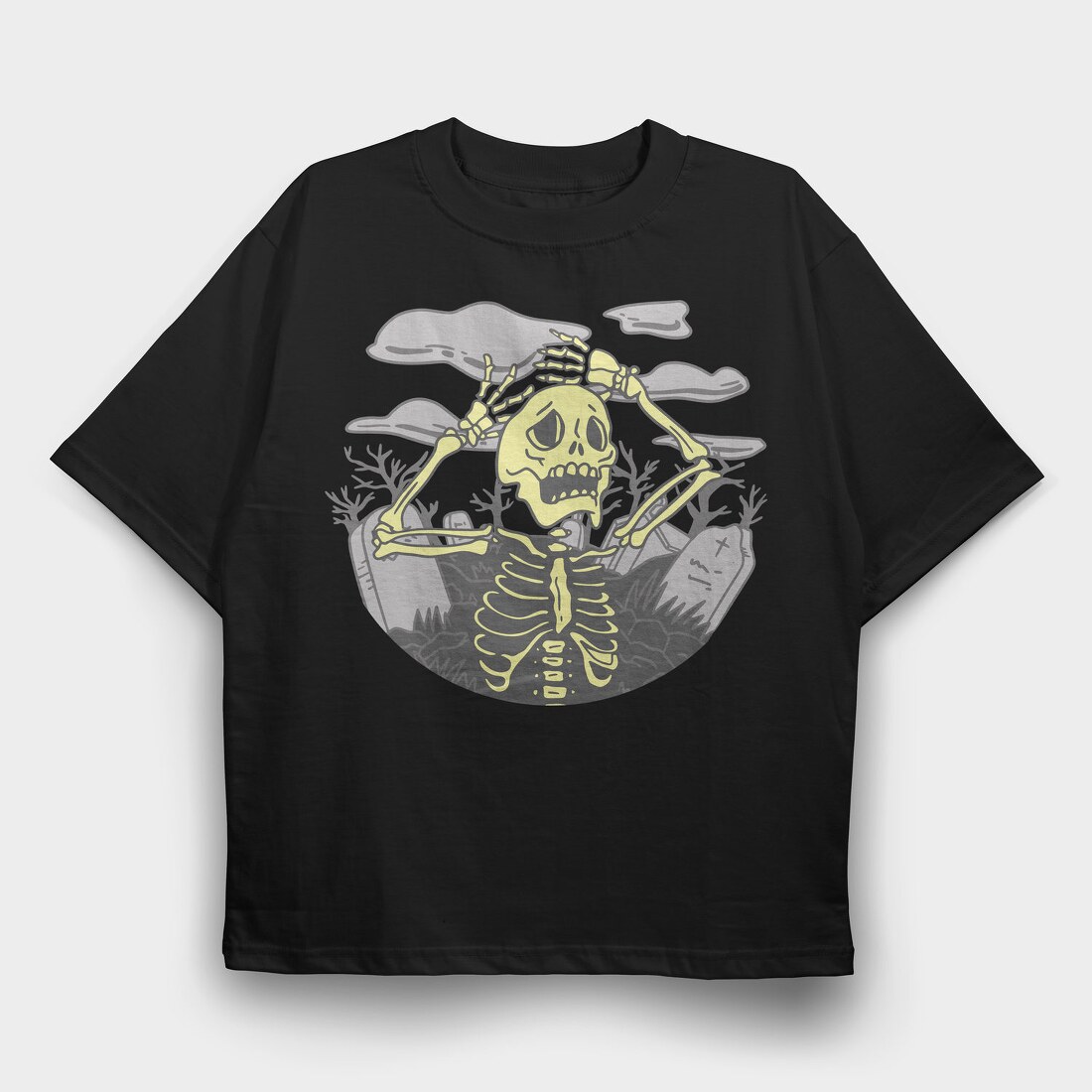 Graveyard Skeleton Unhappy Squeleton In A, Tricou Oversize Barbati (Unisex)
