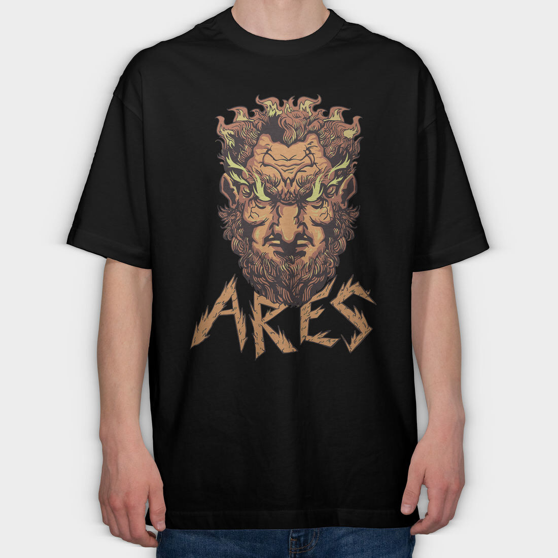 Greek God Ares On Fire Head, Tricou Oversize Barbati (Unisex)