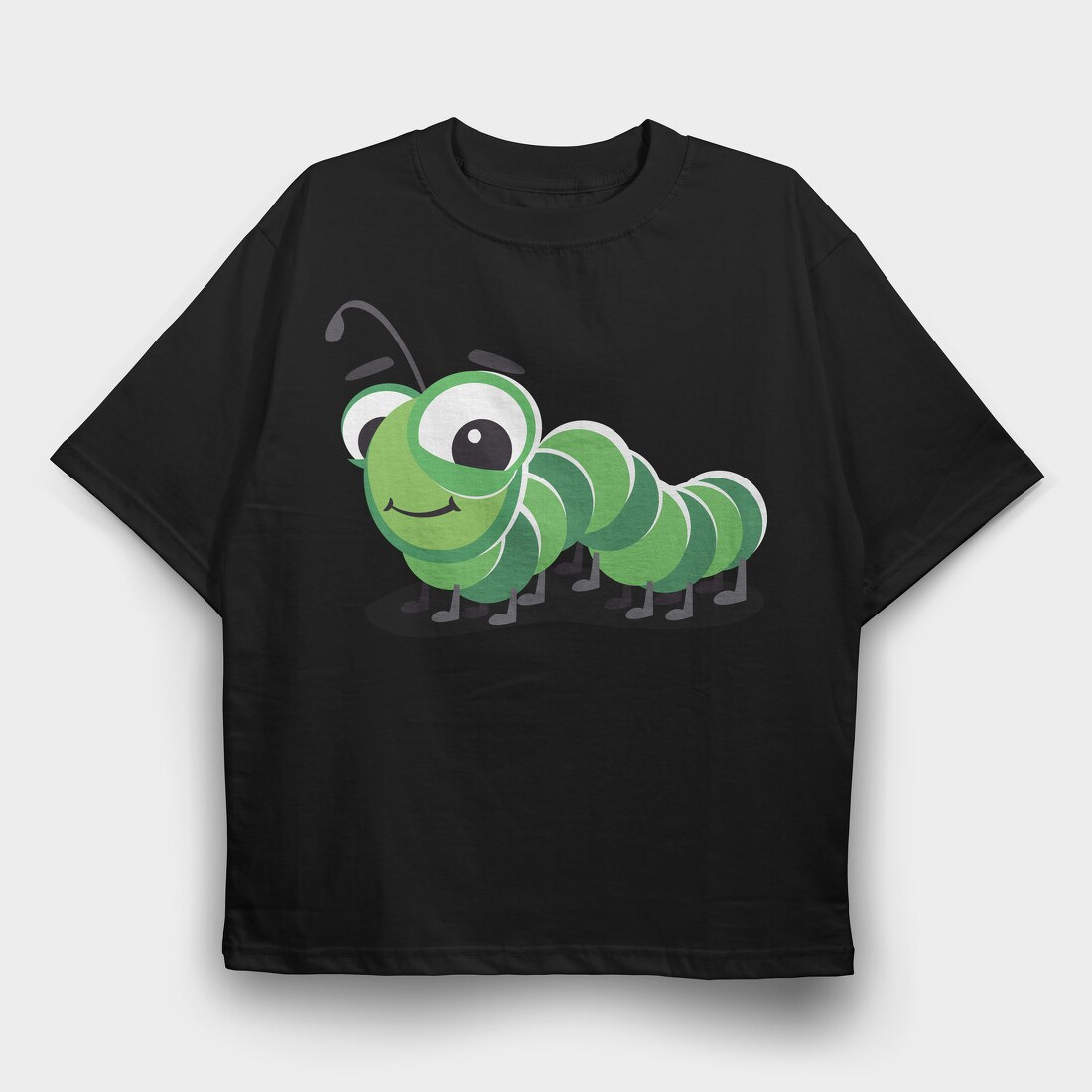 Green Caterpillar Smile, Tricou Oversize Barbati (Unisex)