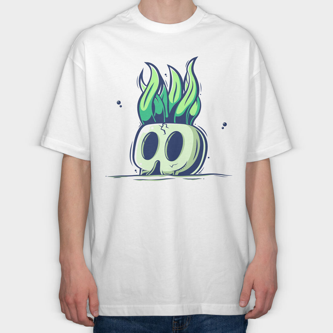 Green Ghost Flames, Tricou Oversize Barbati (Unisex)