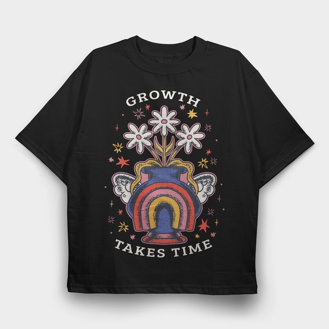 Growth Takes Time Floral Vase 02, Tricou Oversize Barbati (Unisex)