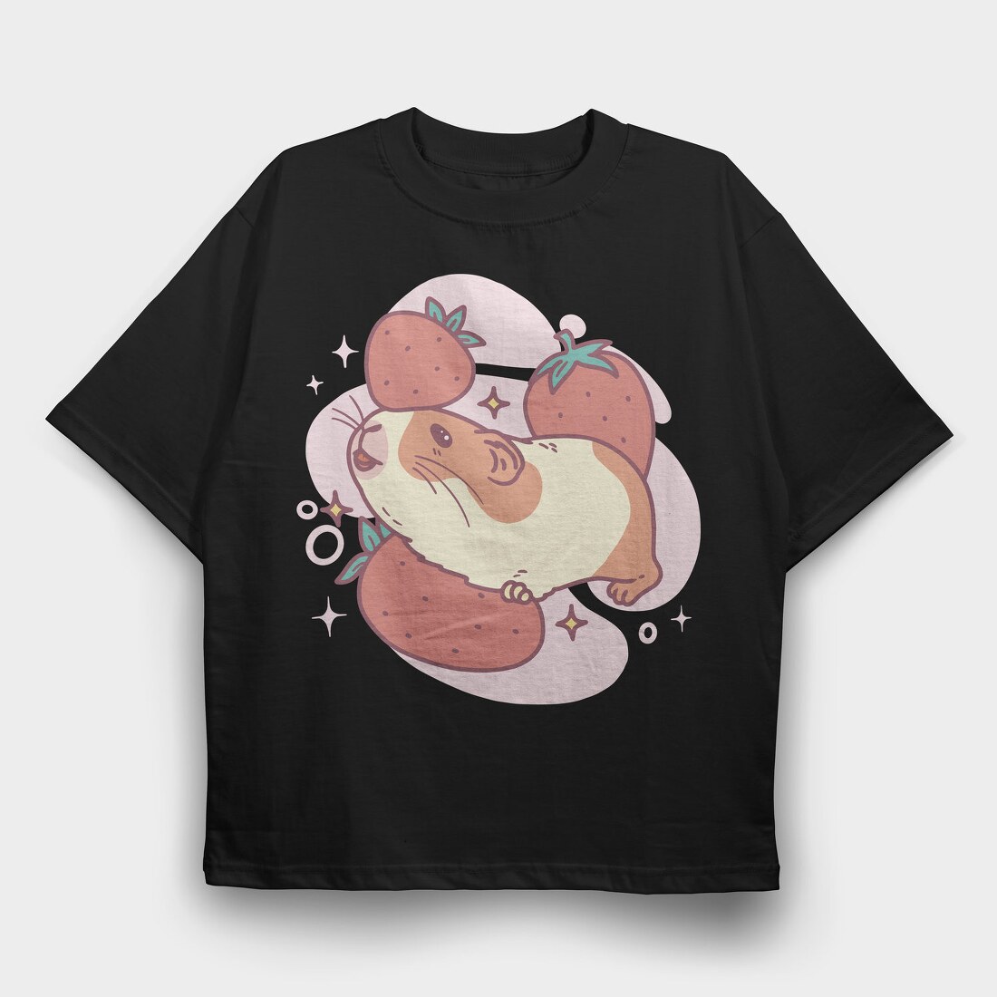 Guinea Pig And Strawberries Kawaii With, Tricou Oversize Barbati (Unisex)