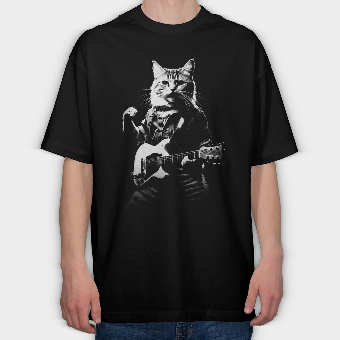 Guitar Cat, Tricou Oversize Barbati (Unisex)