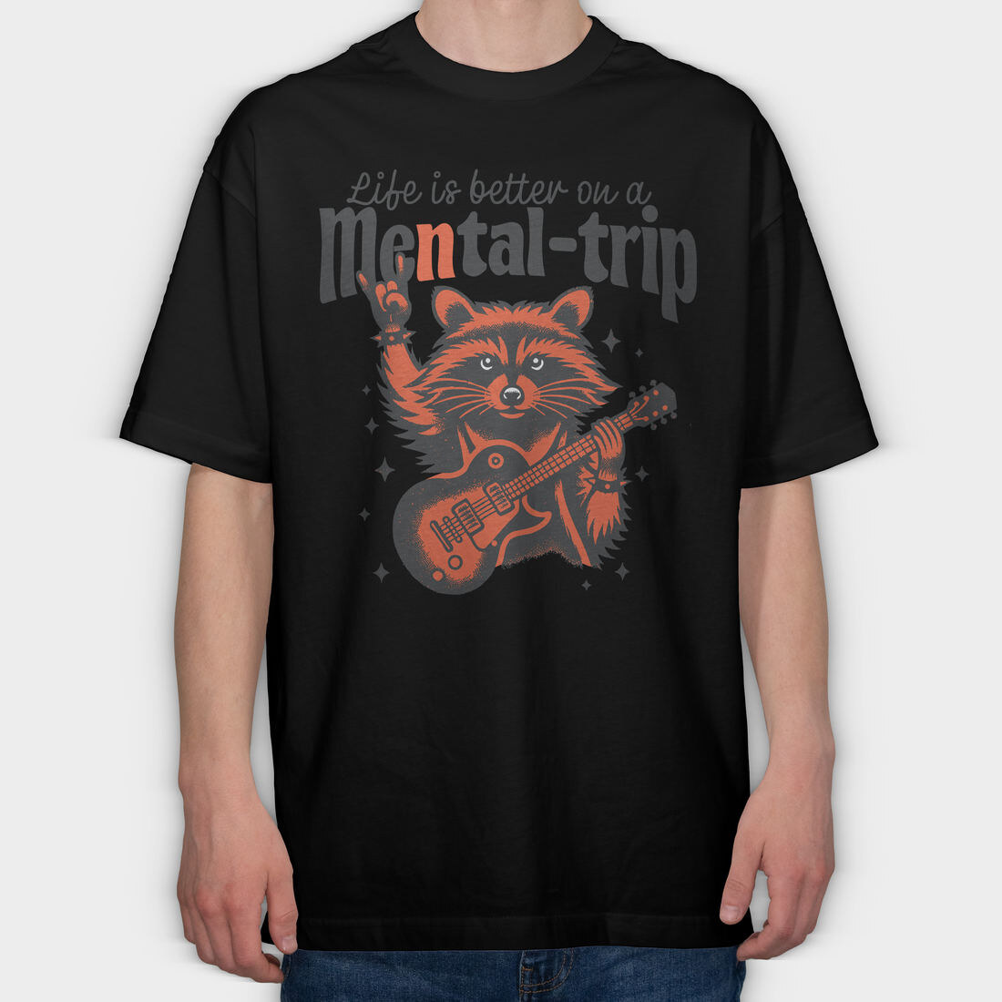 Guitar Playing Raccoon, Tricou Oversize Barbati (Unisex)