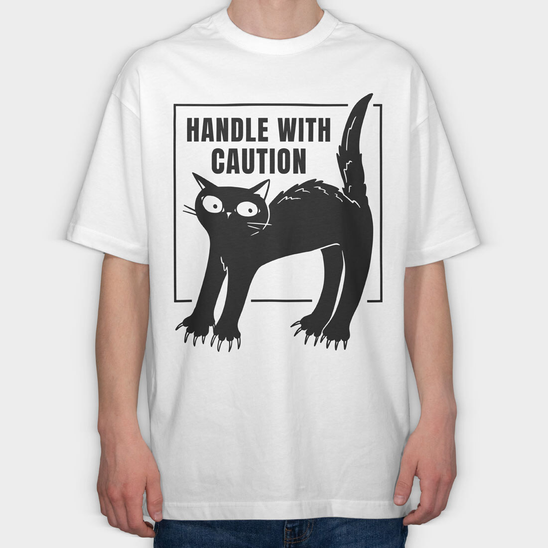 Handle With Caution Cat, Tricou Oversize Barbati (Unisex)