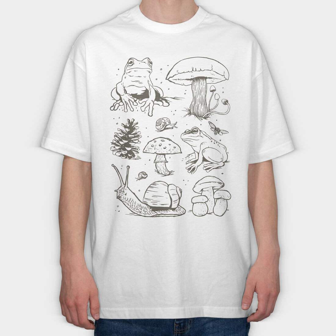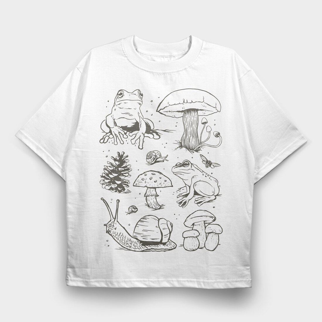 Handrawn Frogs Mushrooms, Tricou Oversize Barbati (Unisex)