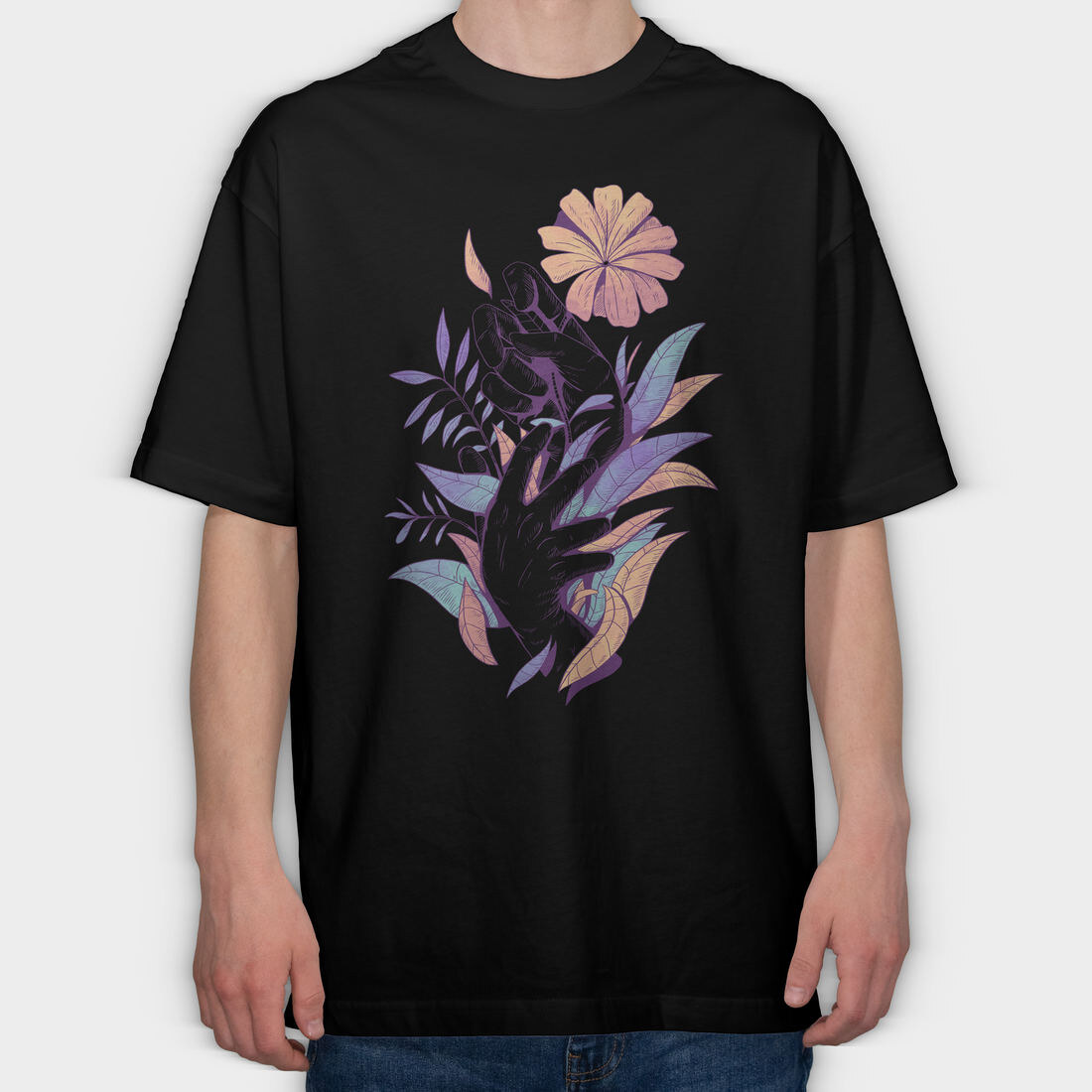 Hands Holding Leaves And Flowers Plants 08, Tricou Oversize Barbati (Unisex)
