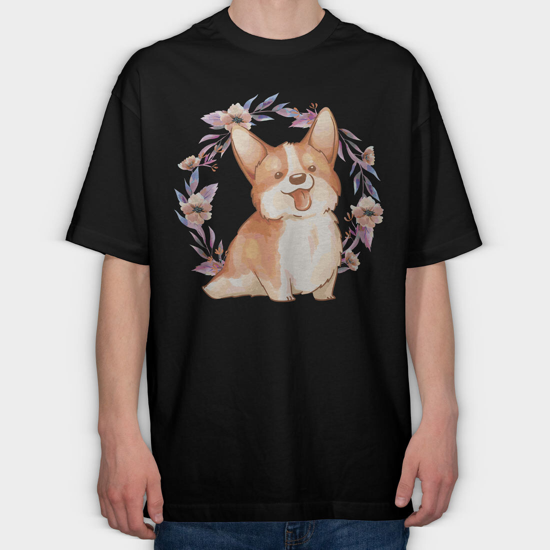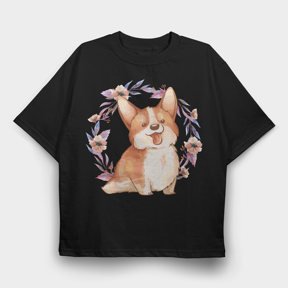 Happy Corgi Dog Watercolor Pillow, Tricou Oversize Barbati (Unisex)