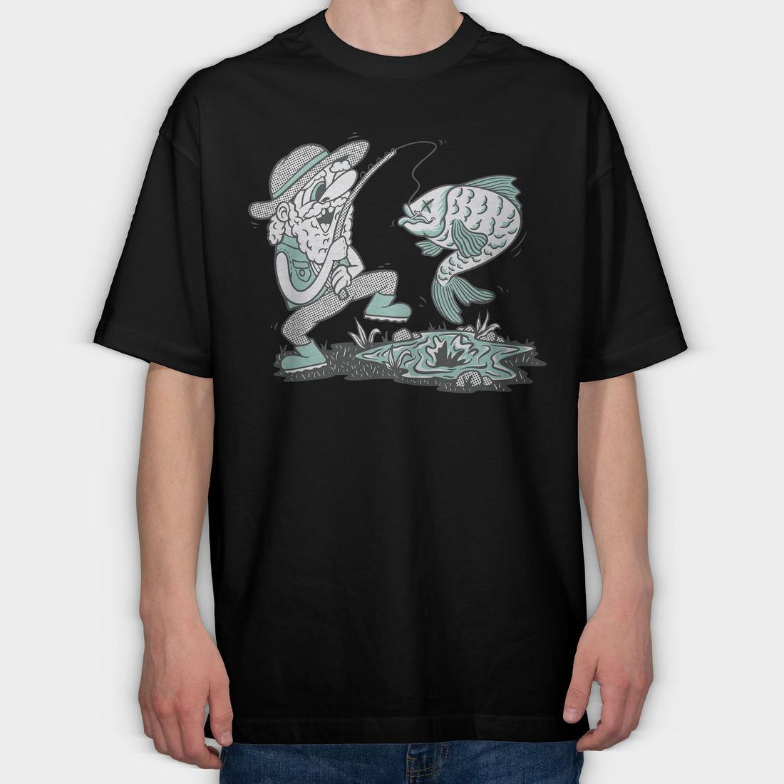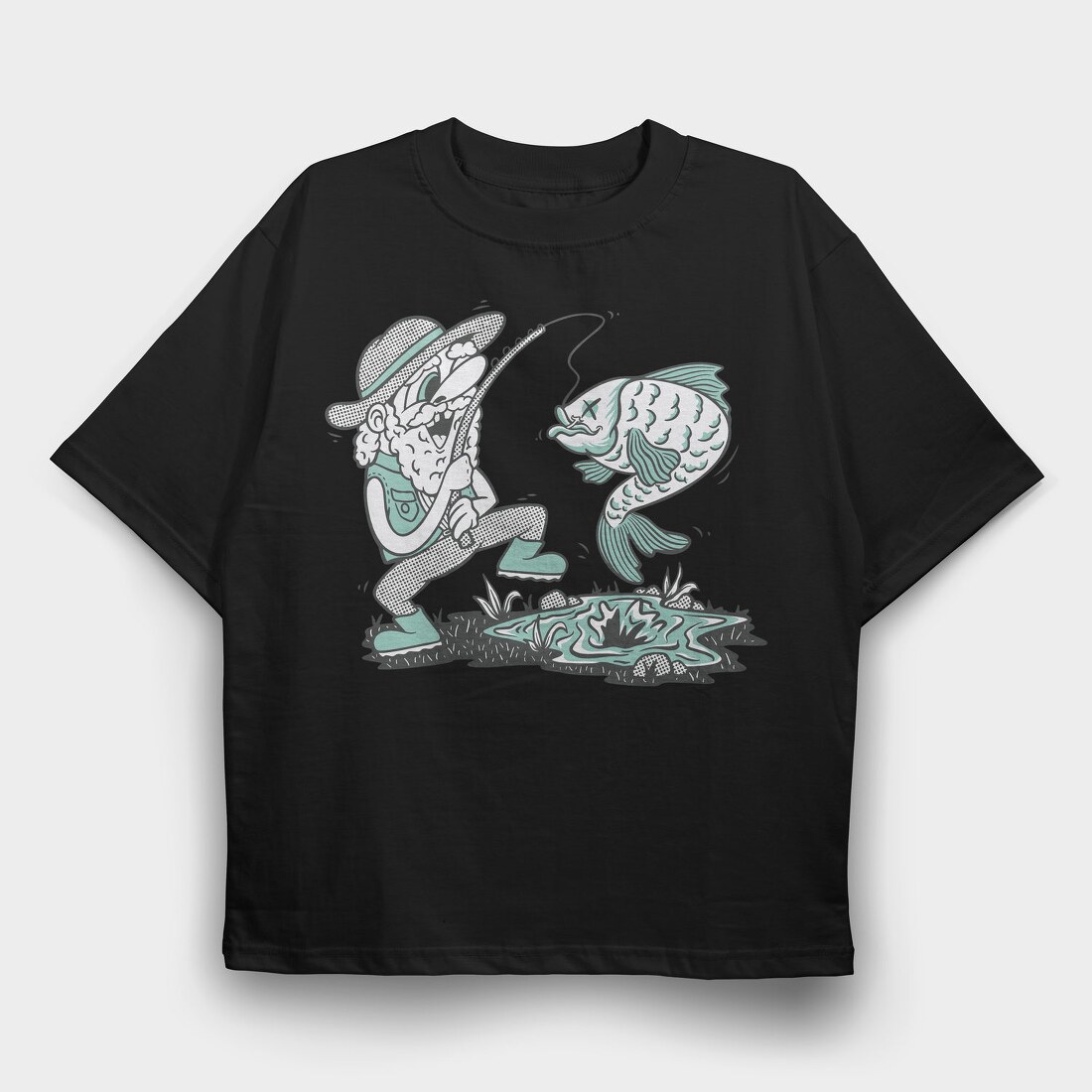 Happy Fisherman And Fish Cartoon, Tricou Oversize Barbati (Unisex)