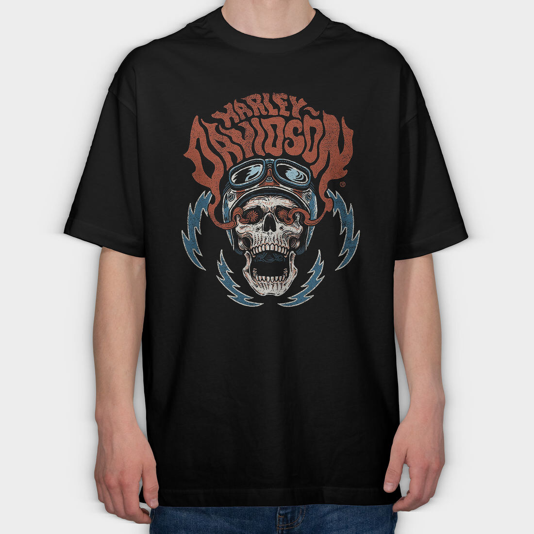 Harley Davidson Skull Biker, Tricou Oversize Barbati (Unisex)