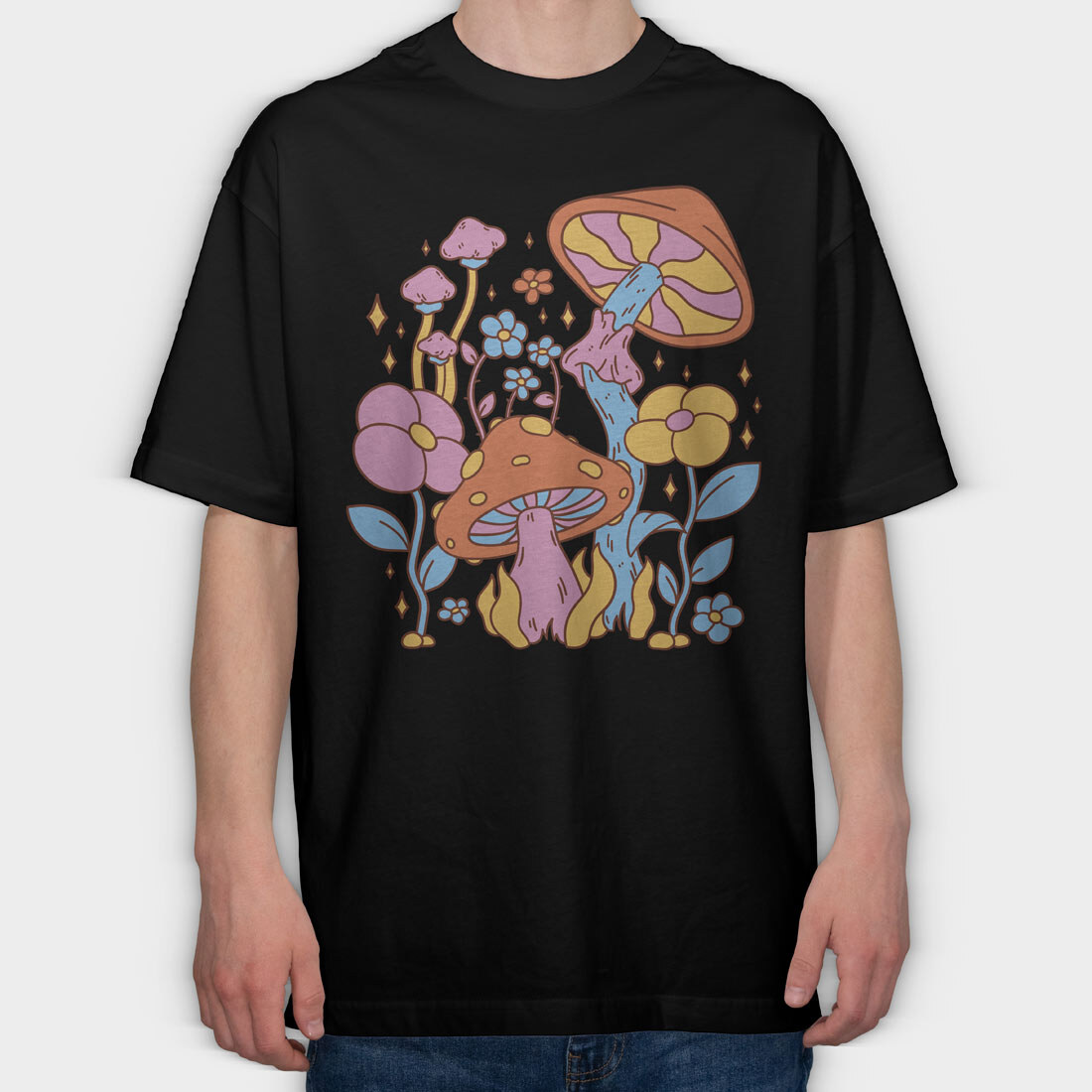 Hippie Flower Mushroom, Tricou Oversize Barbati (Unisex)