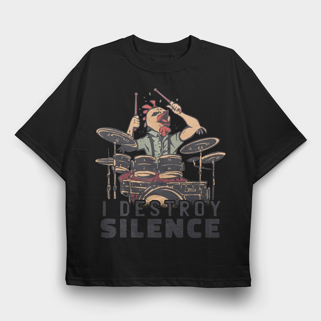I Destroy Silence Drums Chicken, Tricou Oversize Barbati (Unisex)