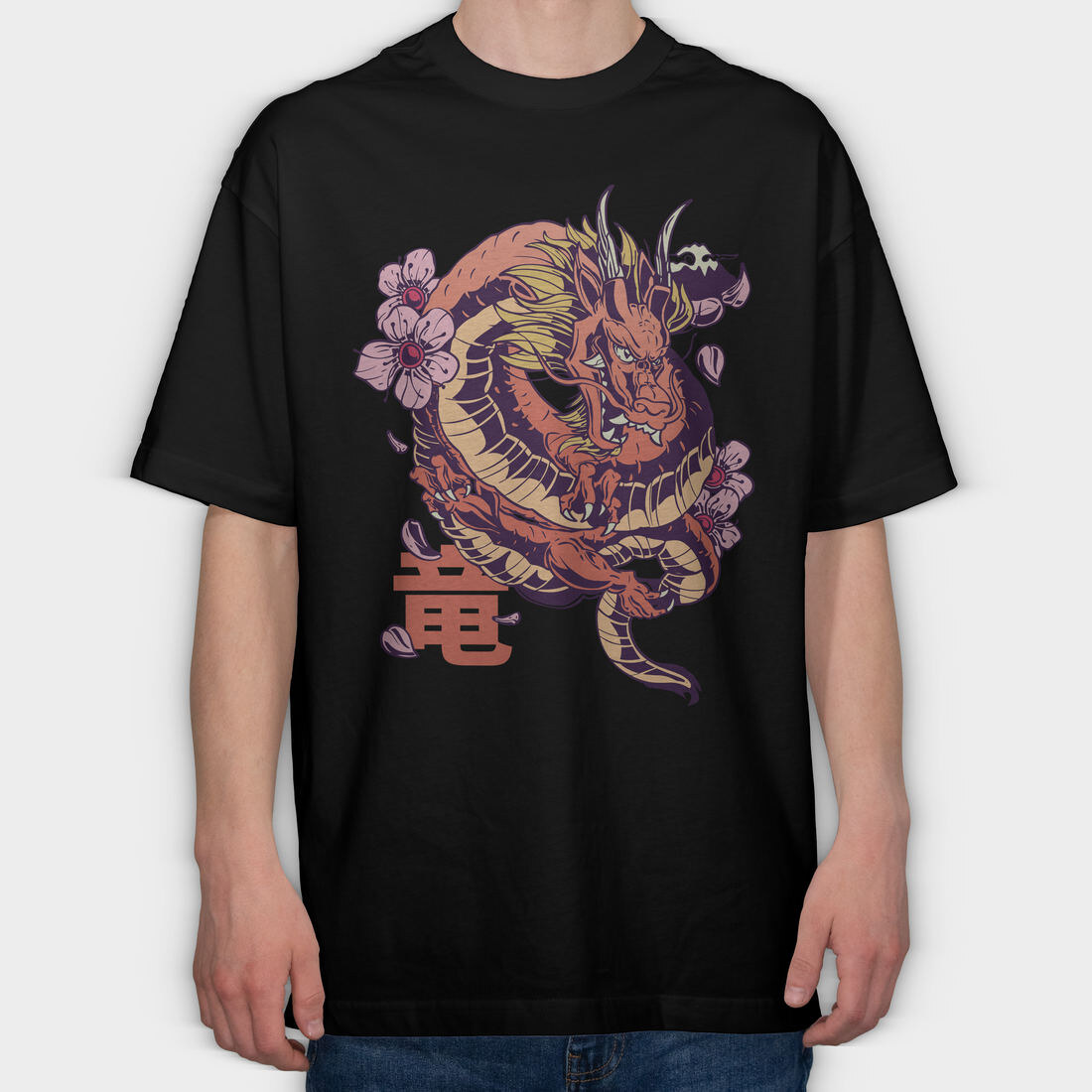 Japanese Dragon Sakura Blossom, Tricou Oversize Barbati (Unisex)