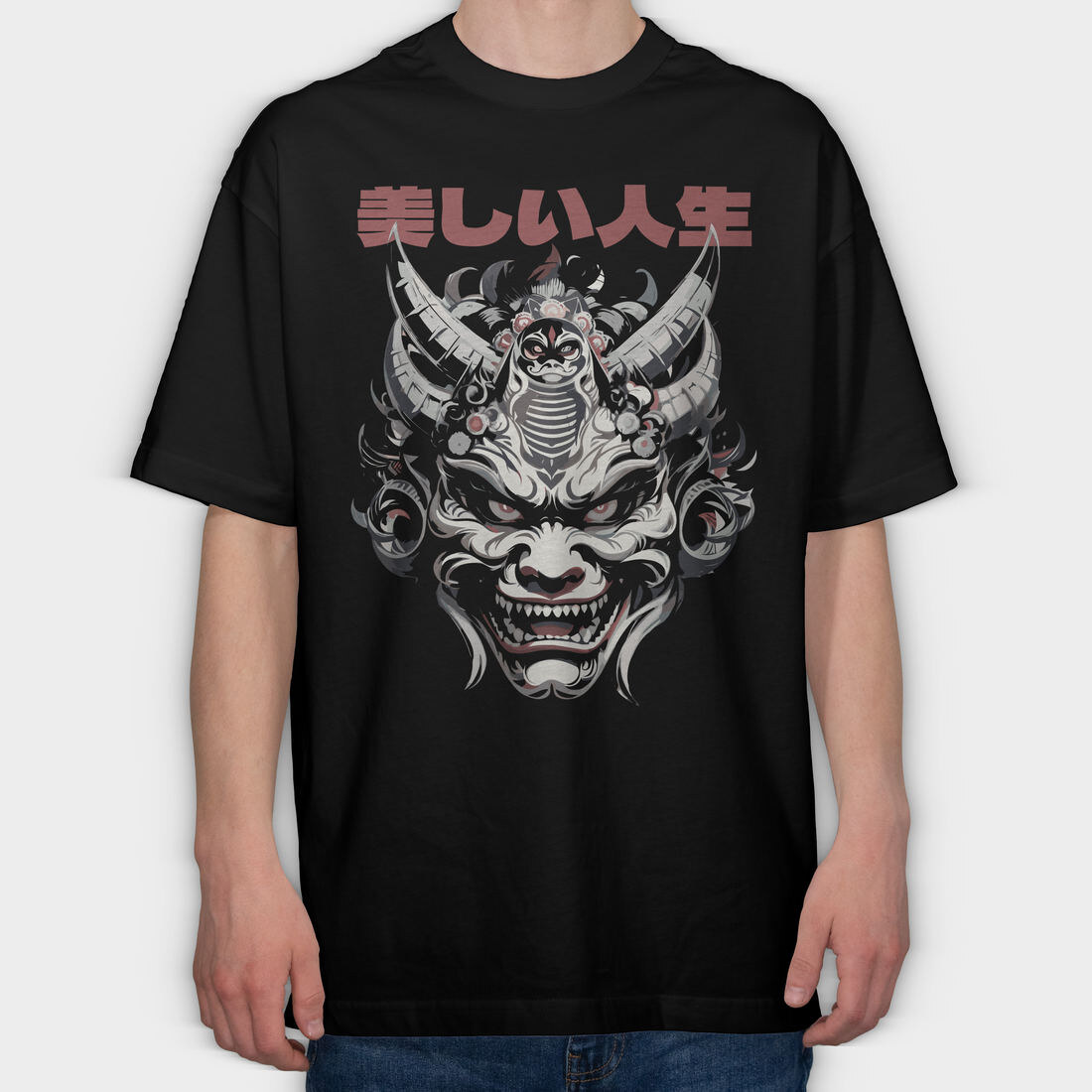 Japanese Oni Mask, Tricou Oversize Barbati (Unisex)