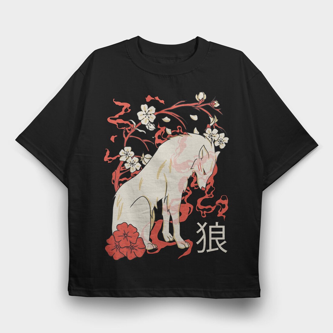Japanese Wolf Floral, Tricou Oversize Barbati (Unisex)