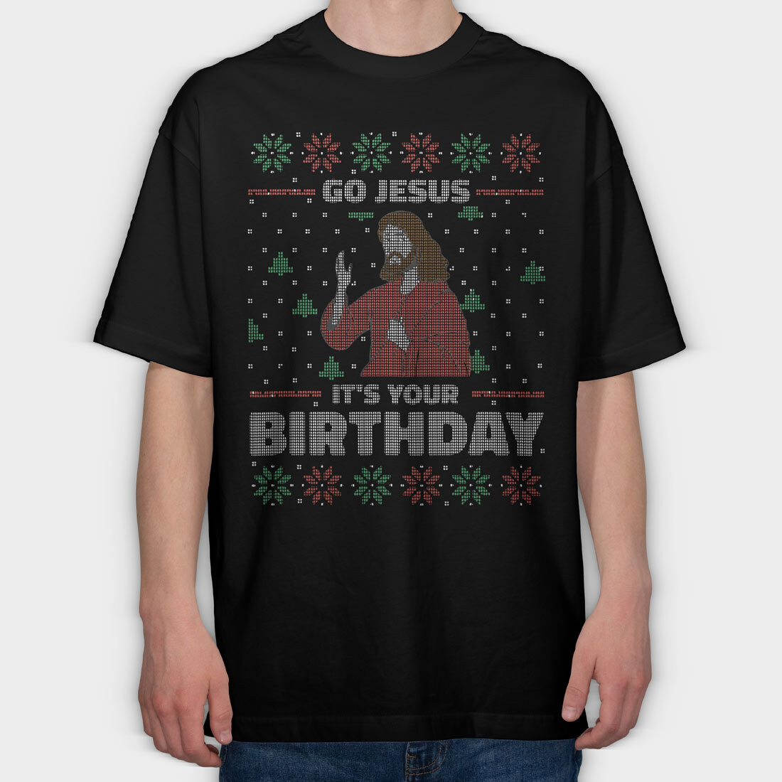 Jesus Birthday Uglysweater, Tricou Oversize Barbati (Unisex)
