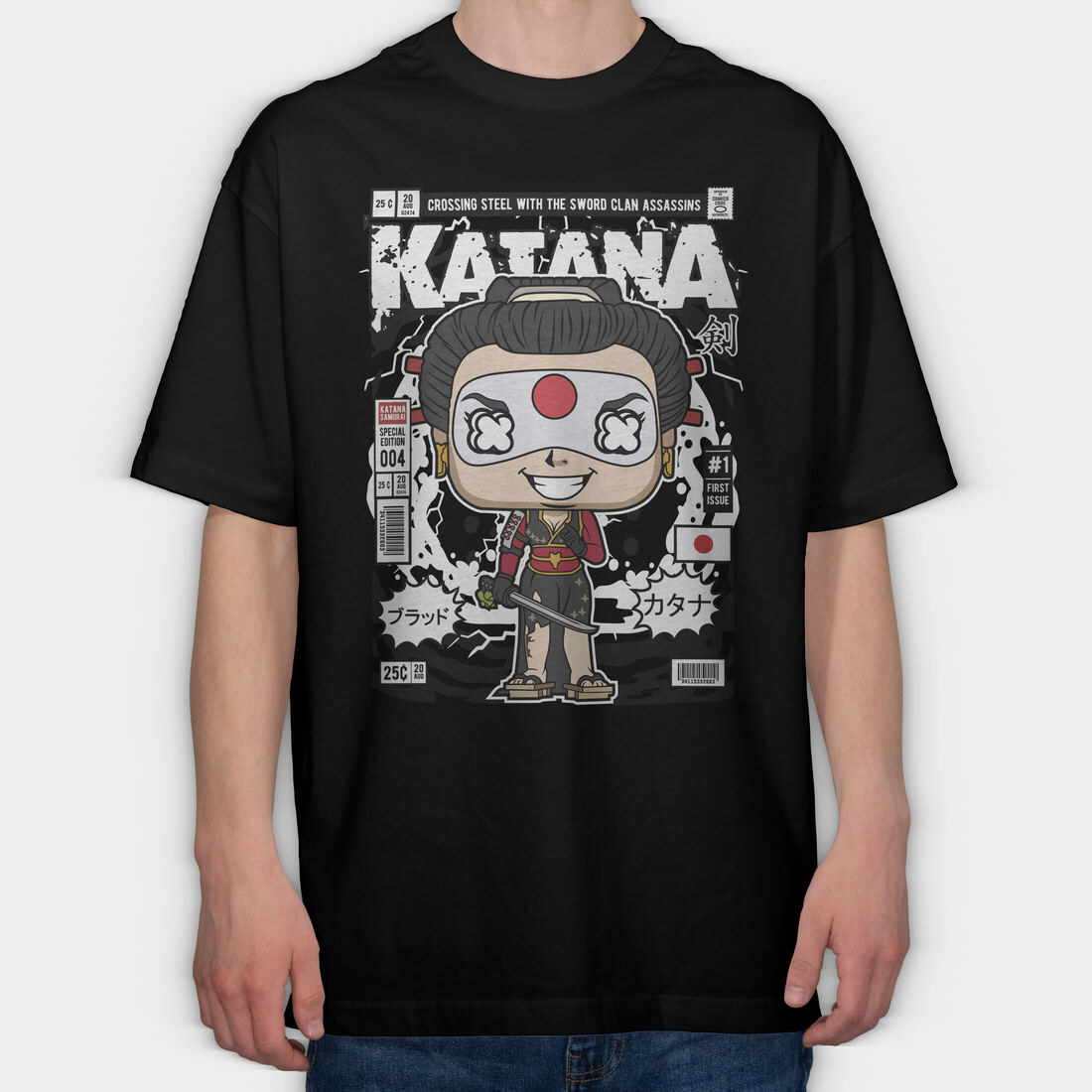 Katana Samurai Pop Art, Tricou Oversize Barbati (Unisex)