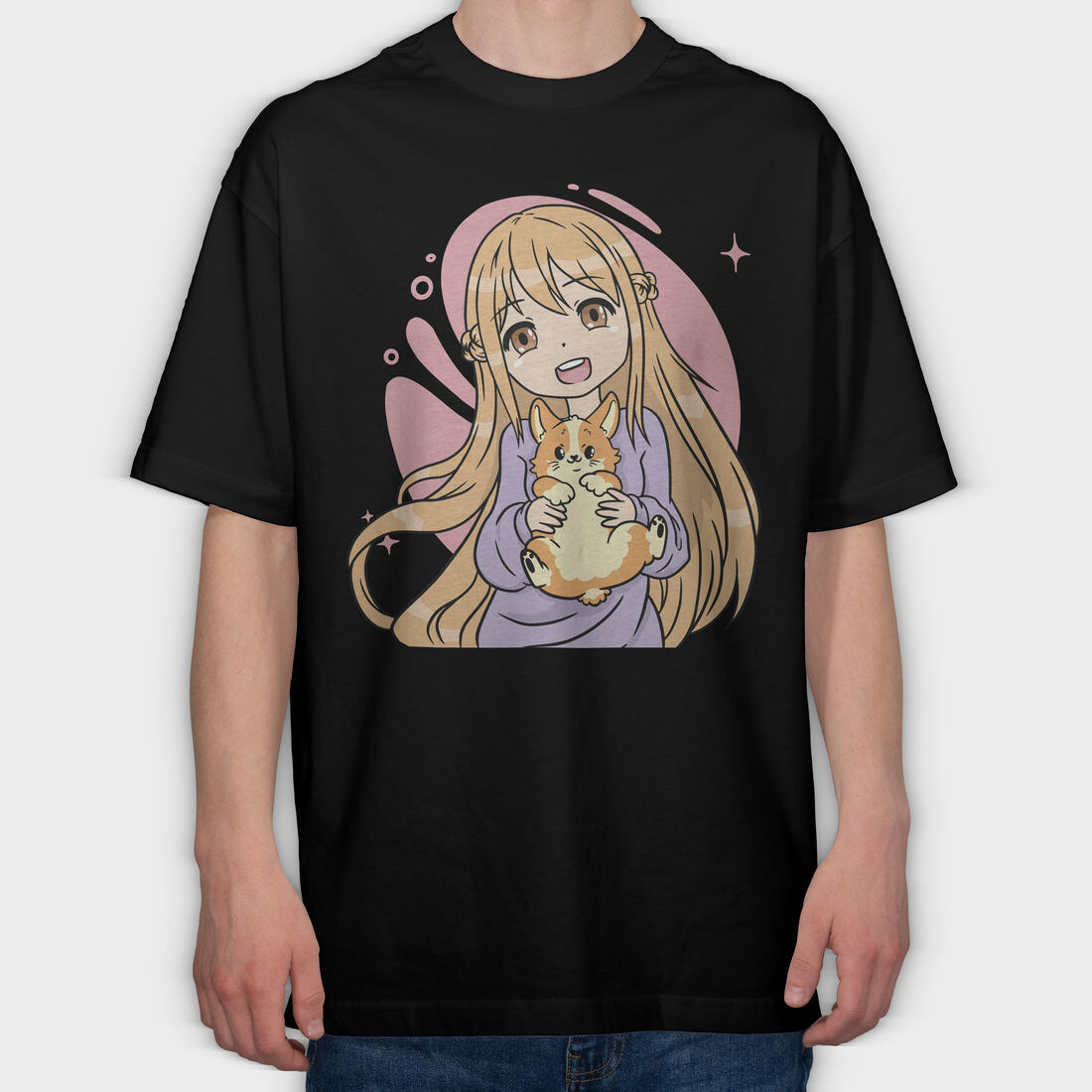 Kawaii Girl Corgi, Tricou Oversize Barbati (Unisex)