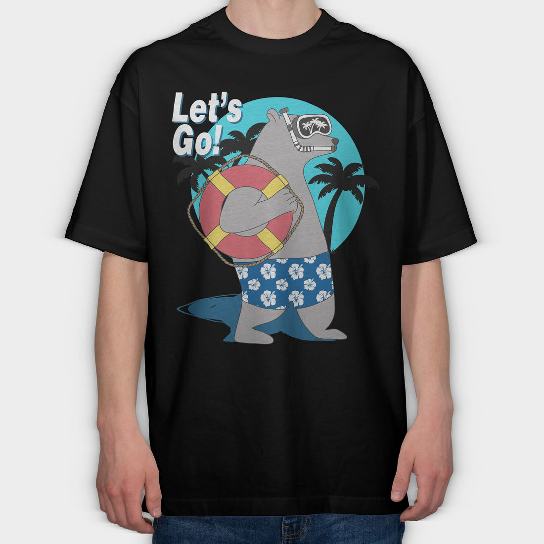 Lets Go Snorkel Bear, Tricou Oversize Barbati (Unisex)