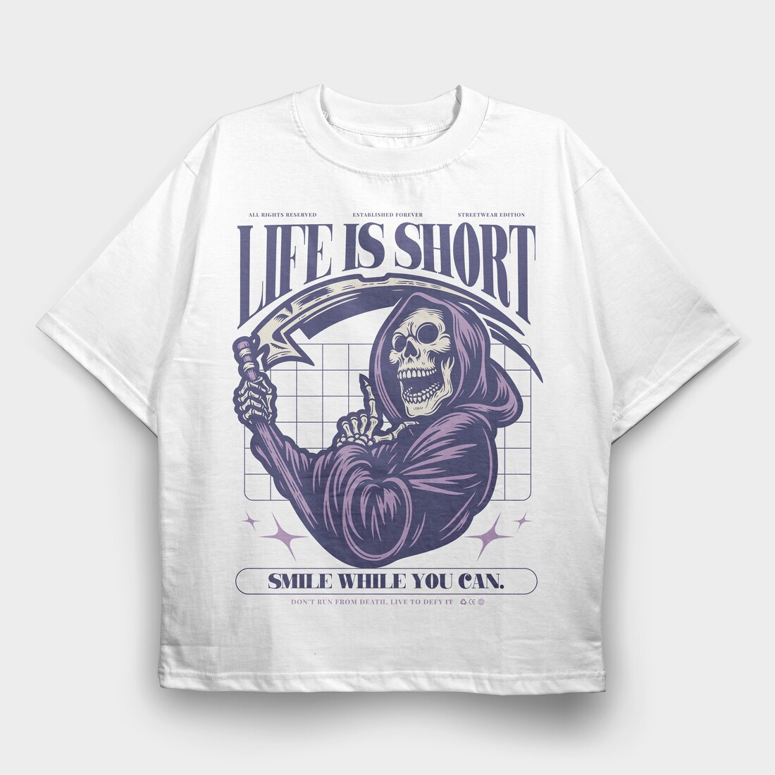 Life Is Short Smile While You Can, Tricou Oversize Barbati (Unisex)
