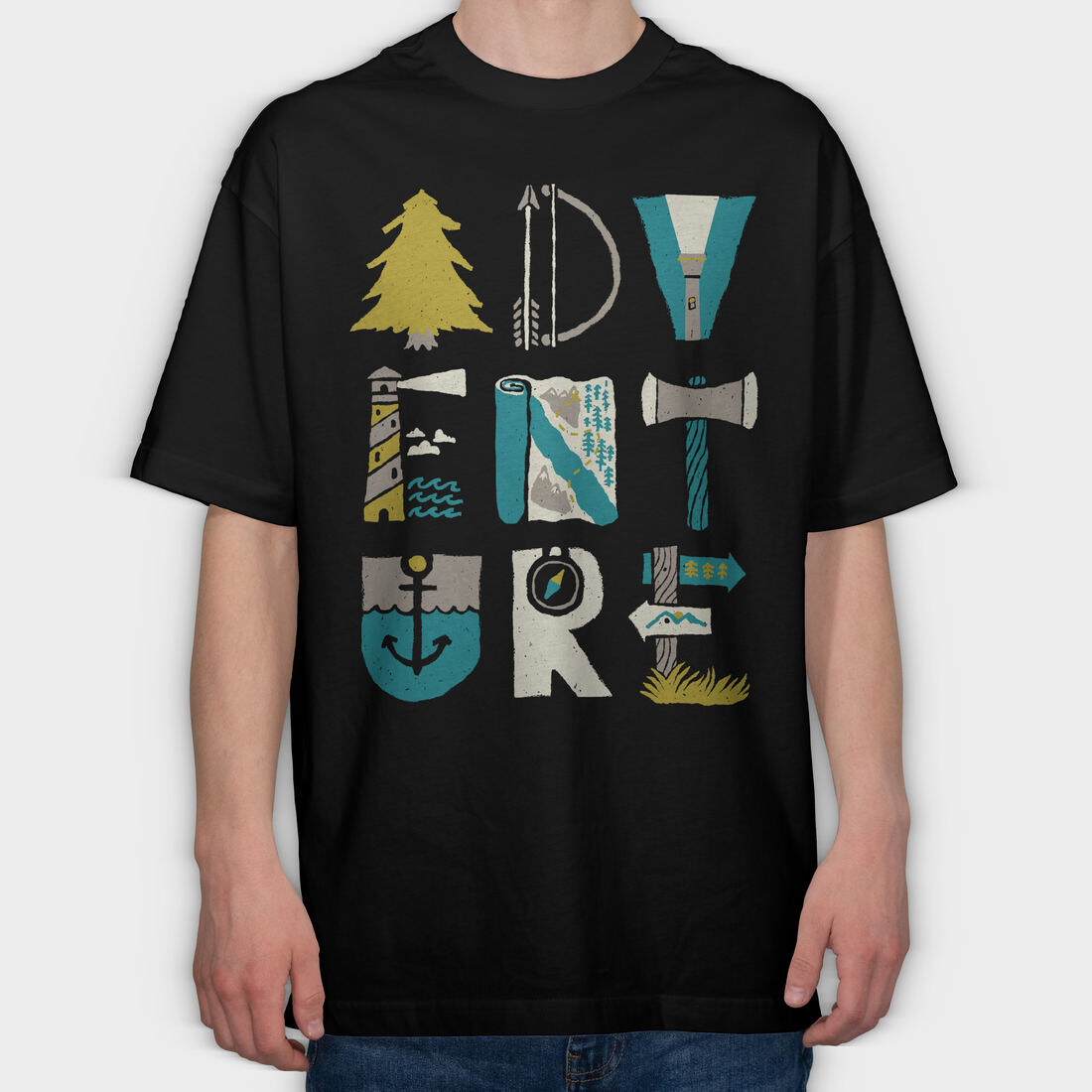 Lighthouse Adventure Map, Tricou Oversize Barbati (Unisex)