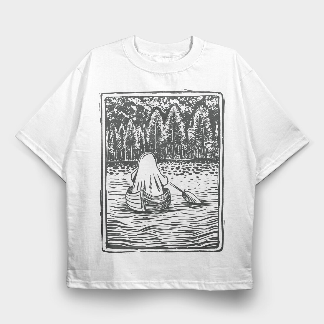 Lino Art Ghost Boat, Tricou Oversize Barbati (Unisex)