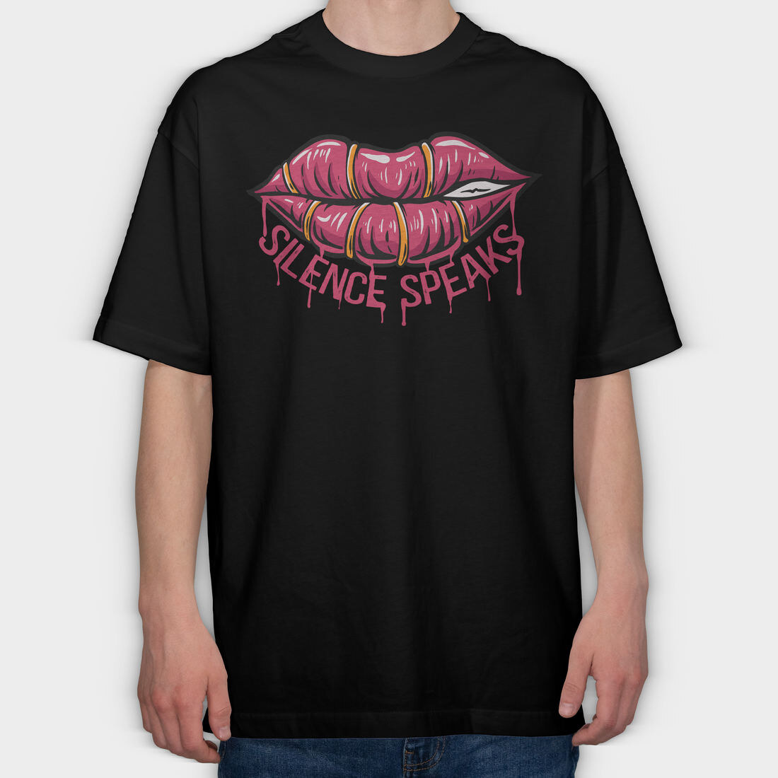 Lips Speak Silence, Tricou Oversize Barbati (Unisex)