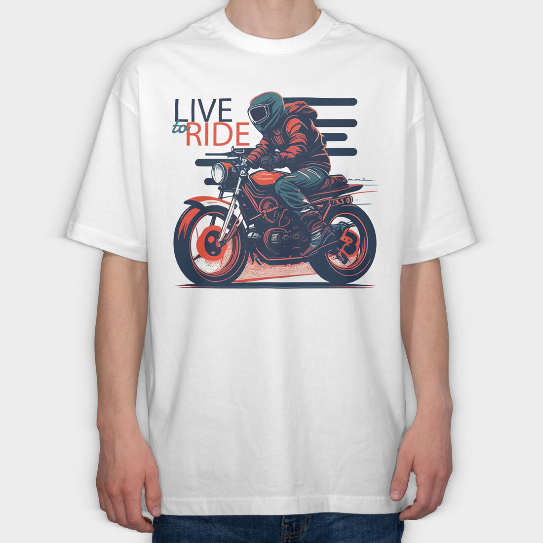 Live to Live MotorcycleArt RetroStyle, Tricou Oversize Barbati (Unisex)
