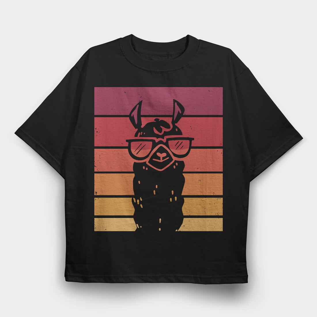 Llama Animal Retro Sunset, Tricou Oversize Barbati (Unisex)