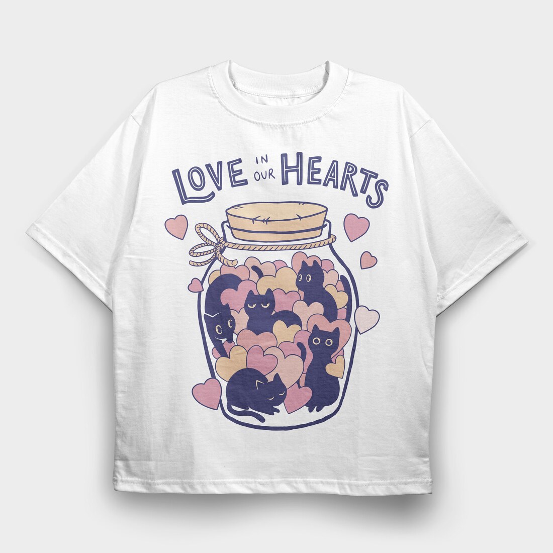 Love in Our Hearts Cats Jar, Tricou Oversize Barbati (Unisex)