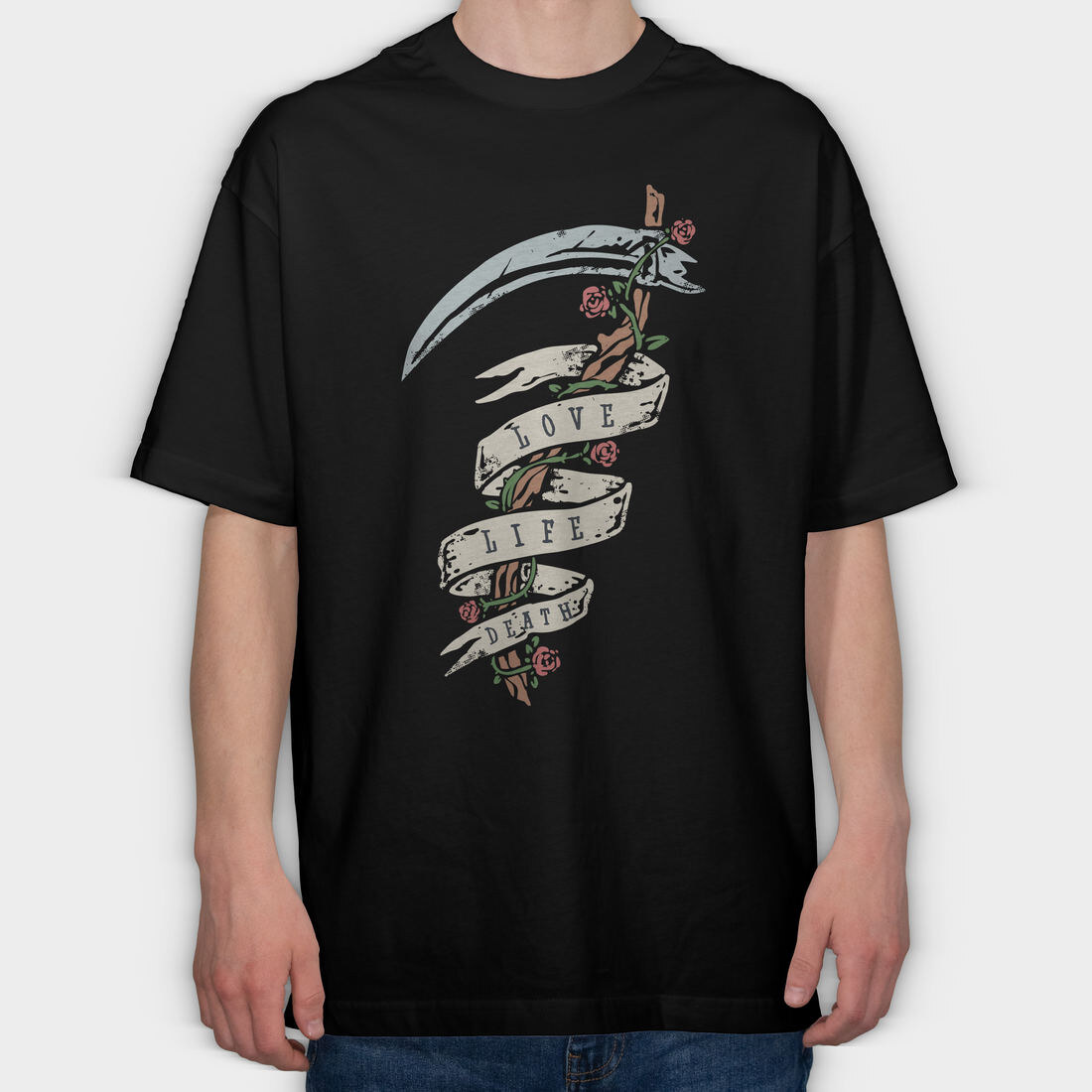 Love Life Death Roses, Tricou Oversize Barbati (Unisex)
