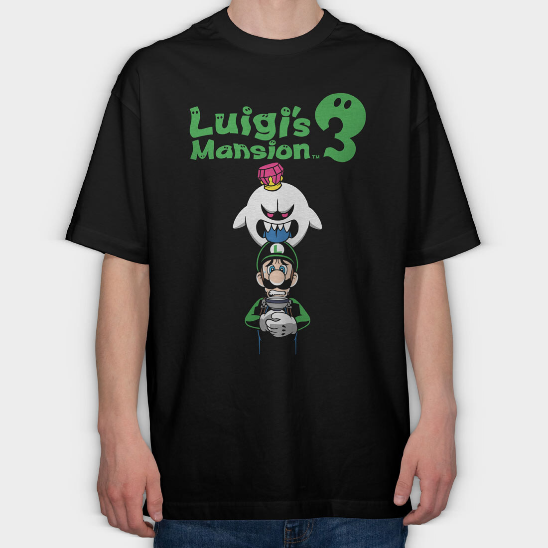 Luigi Boo Black Background, Tricou Oversize Barbati (Unisex)