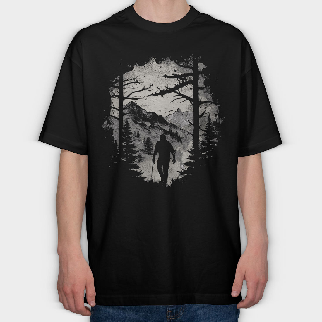 Man Hiking Forest, Tricou Oversize Barbati (Unisex)