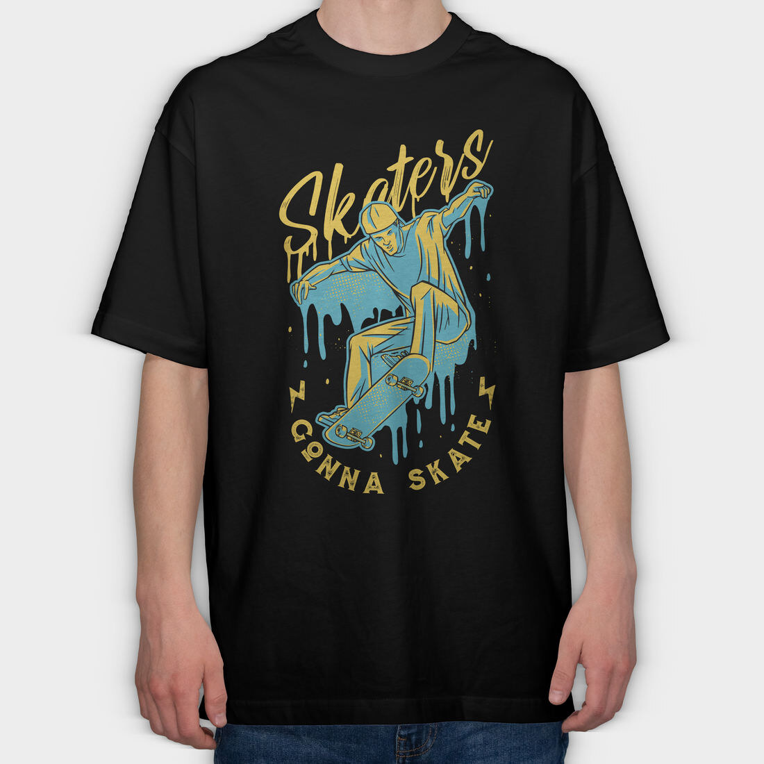 Man In Skateboard Quote Skaters Gonna Skate, Tricou Oversize Barbati (Unisex)