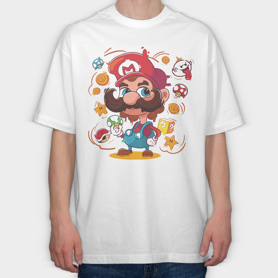 Mario Mustache Madness, Tricou Oversize Barbati (Unisex)