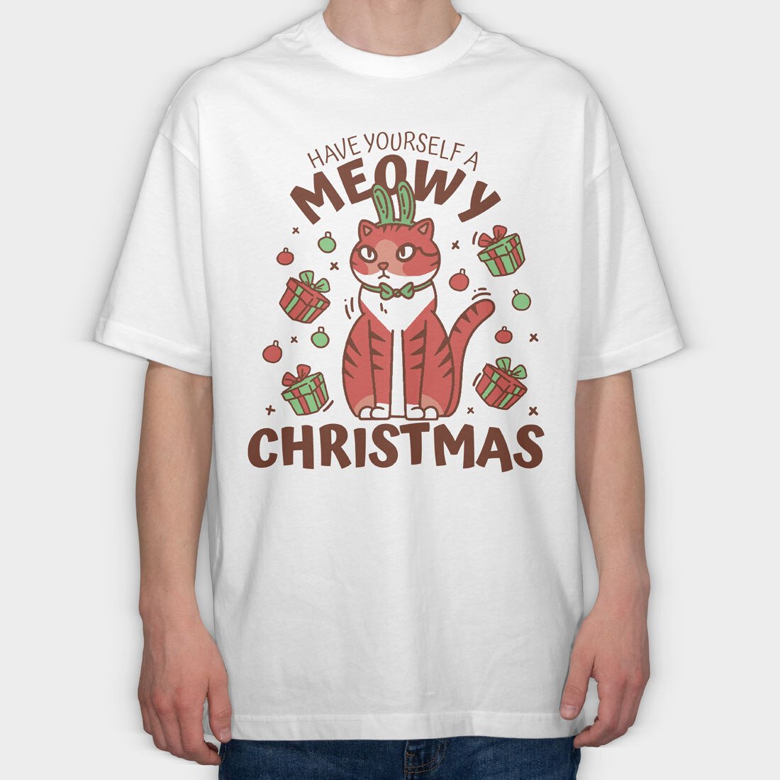 Meowy Christmas, Tricou Oversize Barbati (Unisex)