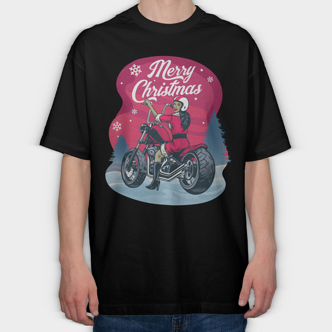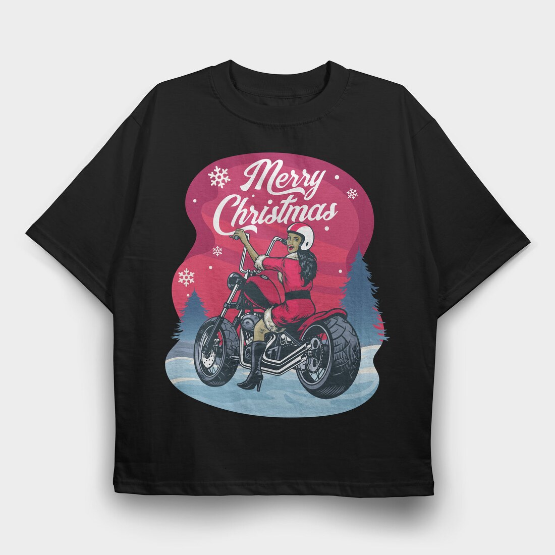 Merry Motorbike Santa, Tricou Oversize Barbati (Unisex)