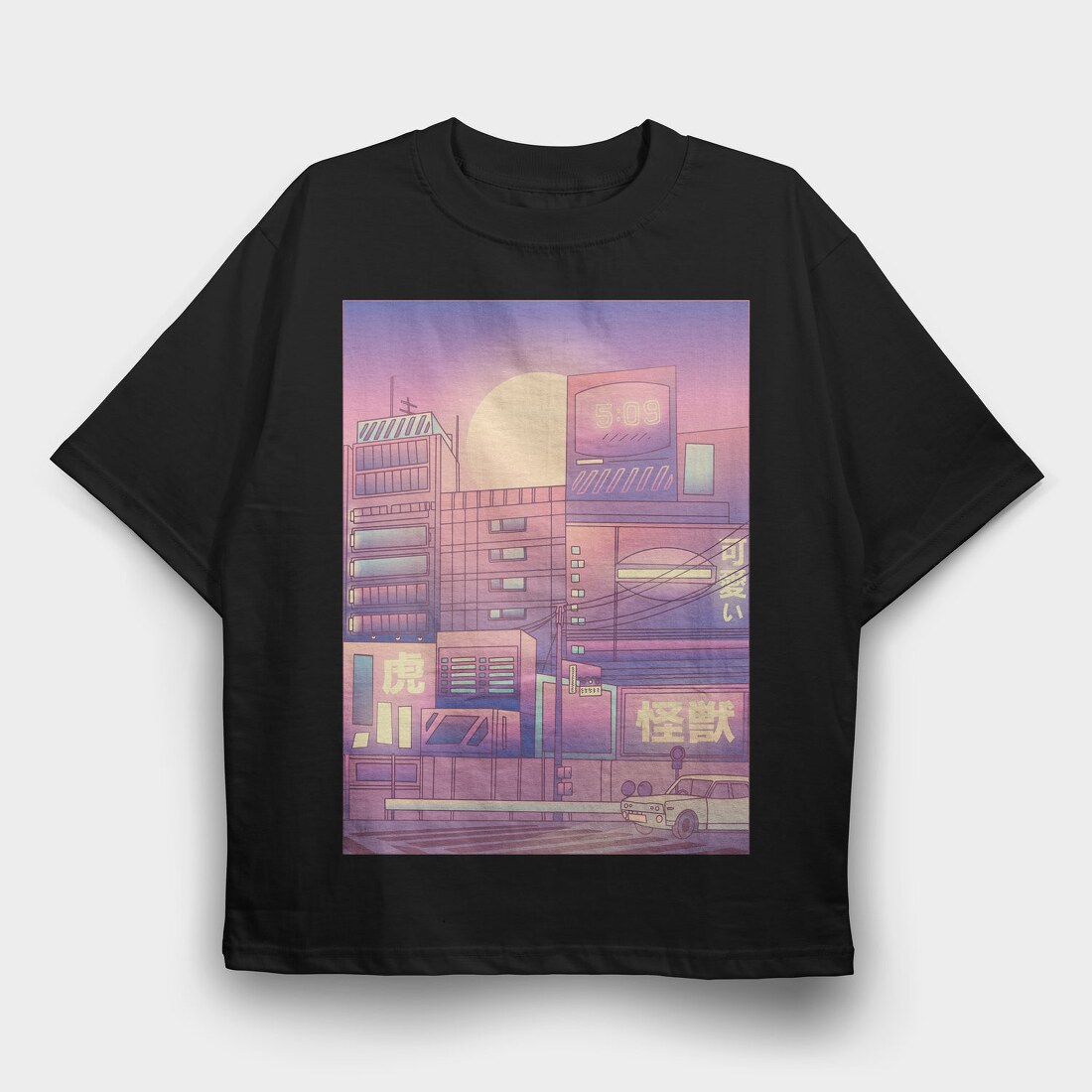 Monochromatic Vaporwave Japan City, Tricou Oversize Barbati (Unisex)