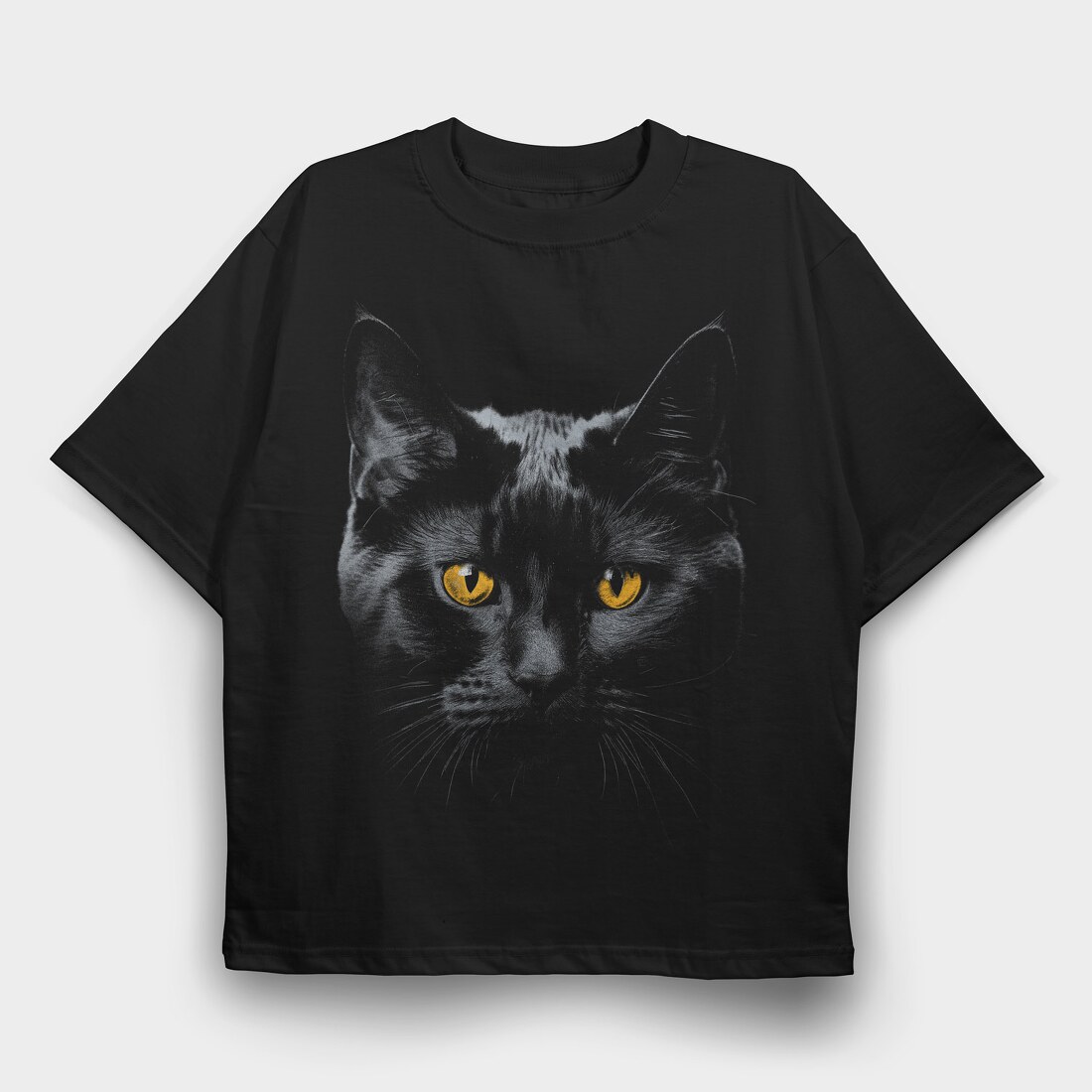 Monochrome Cat Contrast Yellow Eyes, Tricou Oversize Barbati (Unisex)