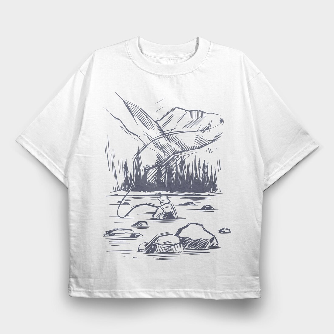 Monochrome Fisherman, Tricou Oversize Barbati (Unisex)