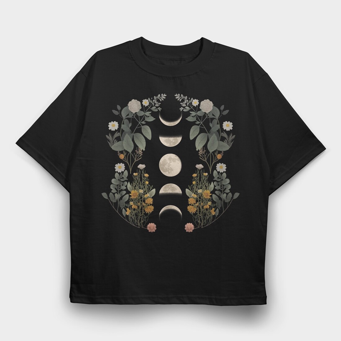 Moon Phases Dark Flowers, Tricou Oversize Barbati (Unisex)